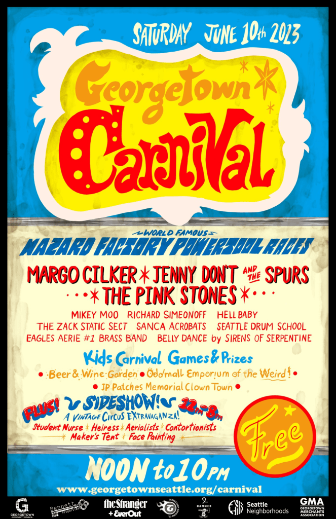The Georgetown Carnival is HUGE, but our little alley of awesome will be found starting at the corner of S. Airport Way & S. Nebraska Street, by the cool mural as seen here: