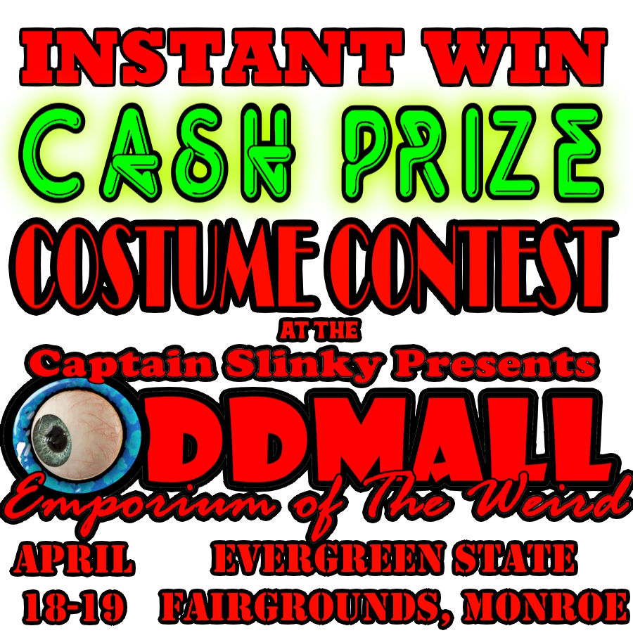 Check out all the official rules at http://www.oddmall.co/costumes before you join us at the Captain Slinky Presents Oddmall Emporium of The Weird SPRUNG 2026 Art, Craft & Gaming Show April 18-19 at the Evergreen State Fairgrounds in Monroe, WA!
