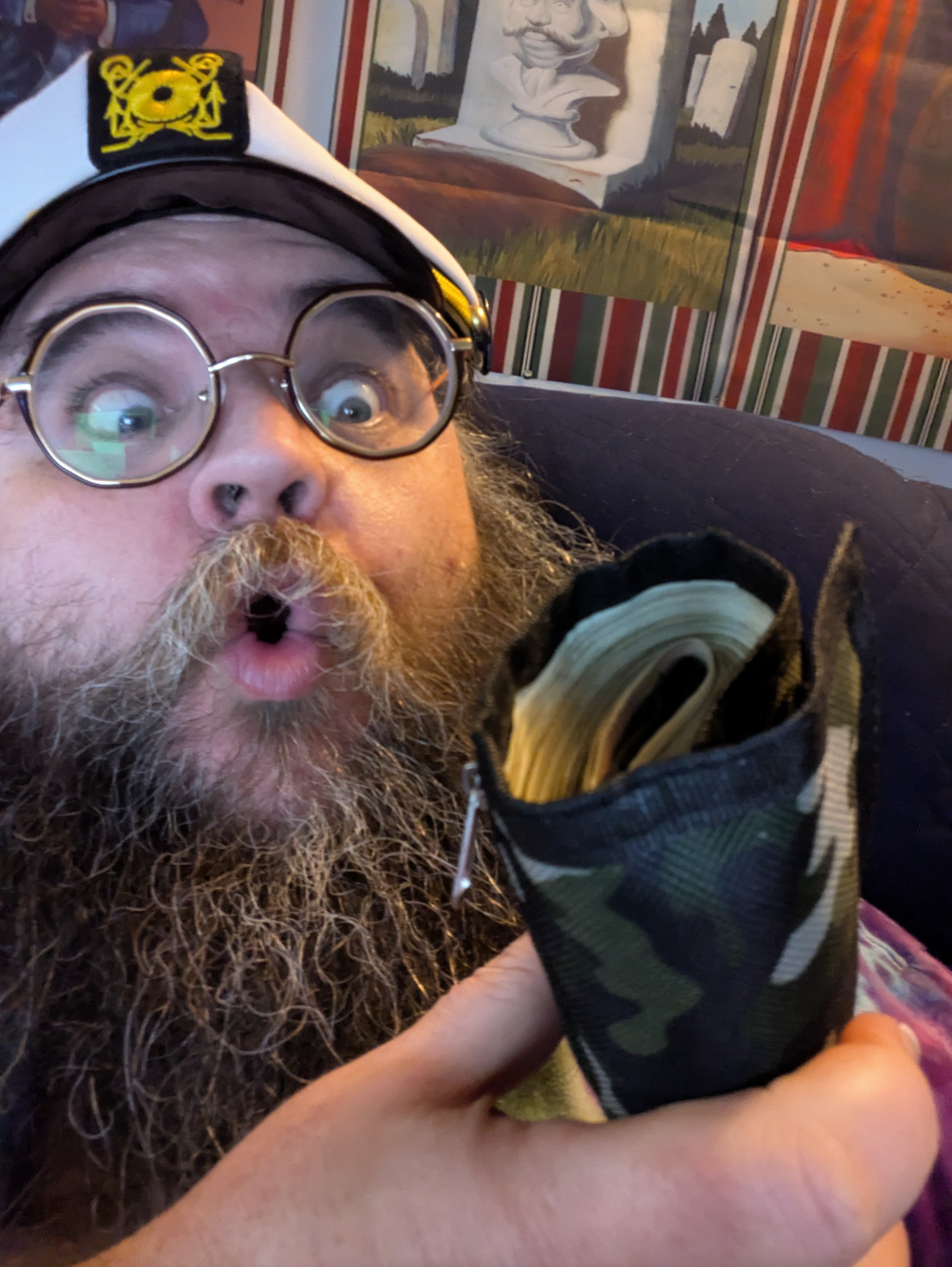 5) PRIZES are: FIRST PRIZE (1) – Captain Slinky’s Wallet, with at least $100 in small, unmarked bills and a bunch of other randomness. No idea how much is actually in there. INSTANT WINNERS (100) – Random prizes which may include – Limited Edition Oddmall Creepsmas 2025 T-Shirt ($15 value), Oddmall Sticker Packs ($5 Value), Collectible Action Figures ($5-$25 Value), Board Games ($10-$40 Value), Assorted Silly Things (PRICELESS). EVERYBODY WHO ENTERS (ALL) – Limited Edition Oddmall Creepsmas Poster (Priceless!)