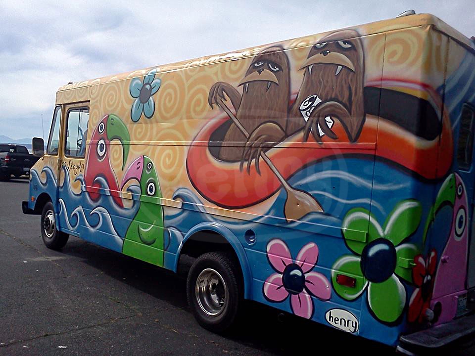 Ryan ‘Henry’ Ward is a Seattle based artist. Specializing in large scale murals, he also has a large body of gallery canvas work. He has painted over 180 murals in the city of Seattle and around the United States and other countries. He has his studio in an old warehouse in the industrial district of Ballard, where the Puget Sound intersects with the fresh water lakes that interlace the city. He paints freely out of his imagination and also takes commissioned requests.